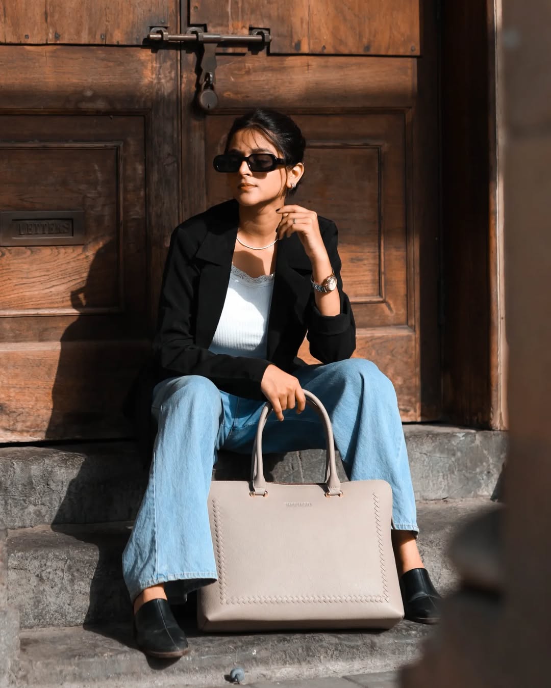 2-in-1 Handcrafted Leather Tote Bag Set with Removable Pouch
